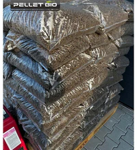 Wood pellets pallet with 70 bags of 15 kg each